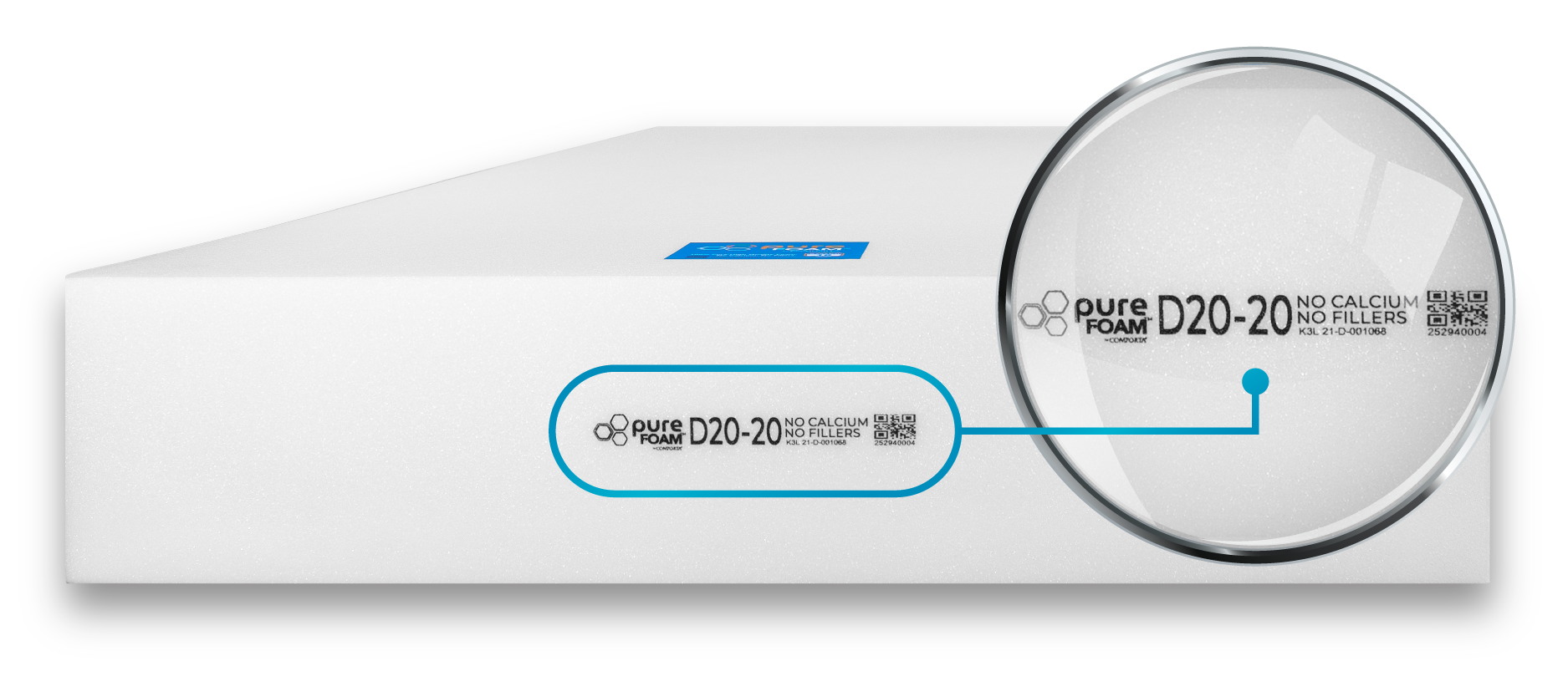 Kasur PureFoam™ asli selalu memiliki stempel dan barcode keaslian yang terletak di sisi busa.